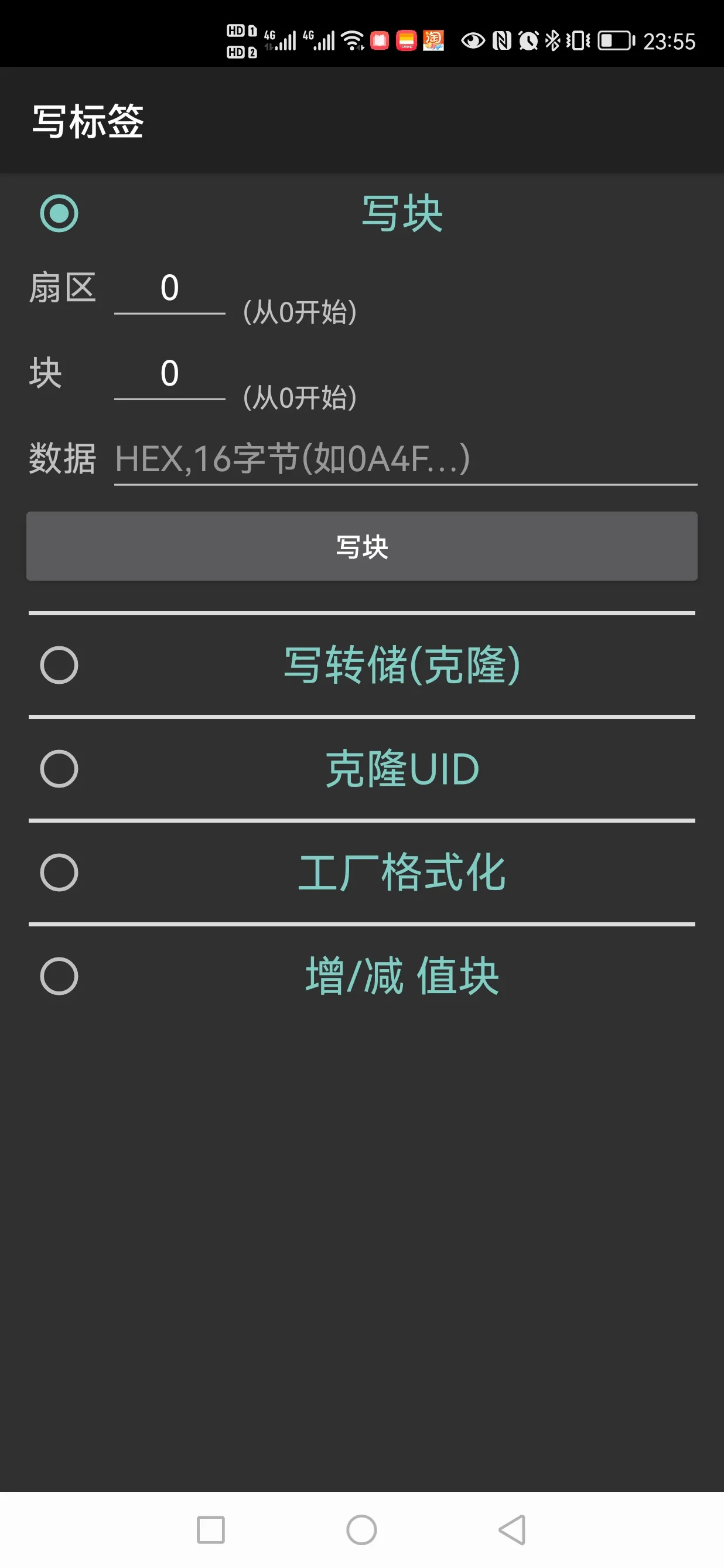 如果只有一个带nfc功能的安卓手机,那么手机只能复制校园卡的第0块第0扇区,类似于nfc卡的卡号或者有点像是nfc的名字。