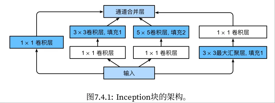 在GoogLeNet中,基本的卷积块被称为Inception块(Inception block)