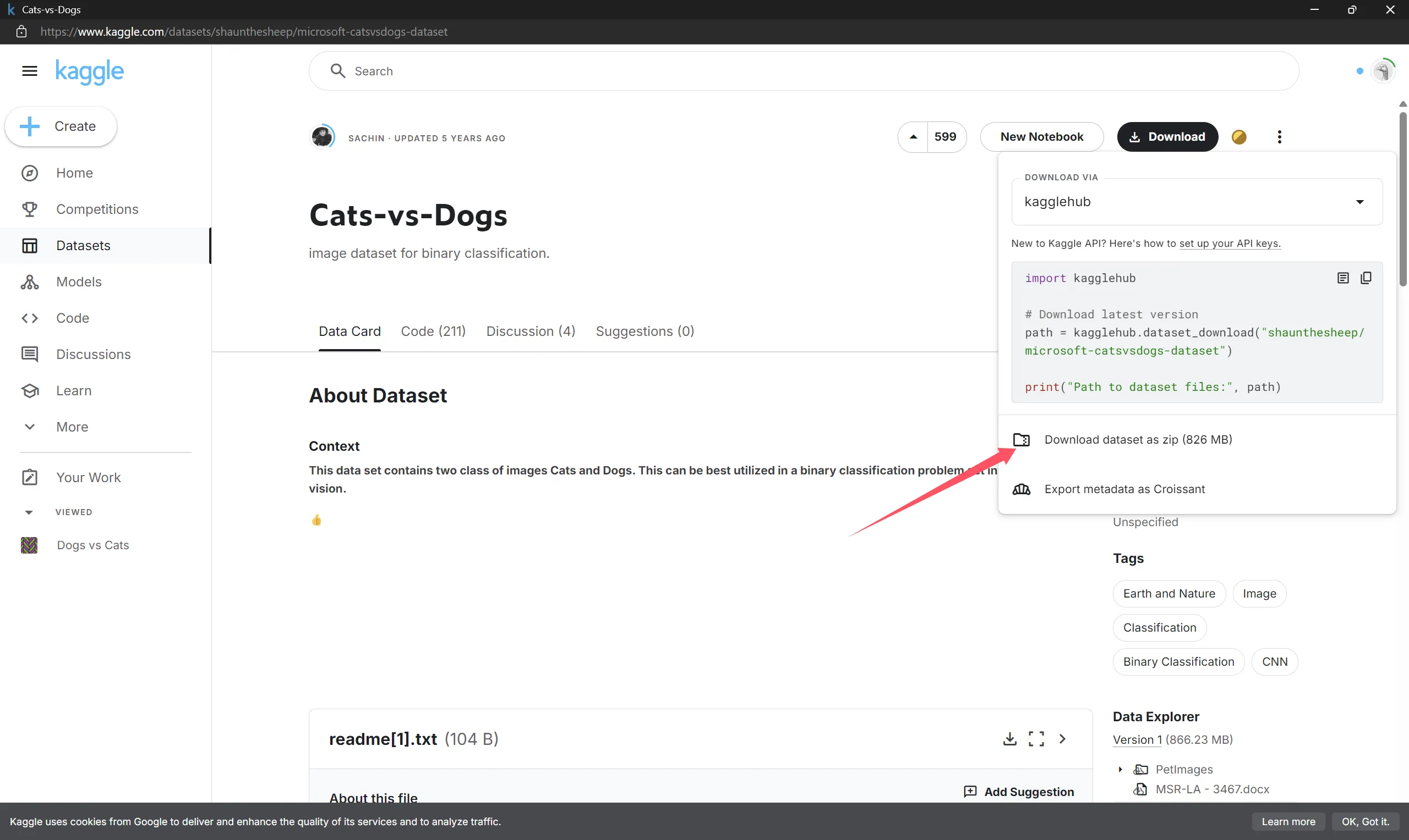 首先下载Kaggle数据集,下载网址,点击Download -> 点击Download as Zip。