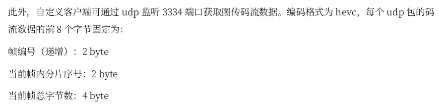 根据官方说明,我们接受udp数据包,要按顺序拼接组装帧数据